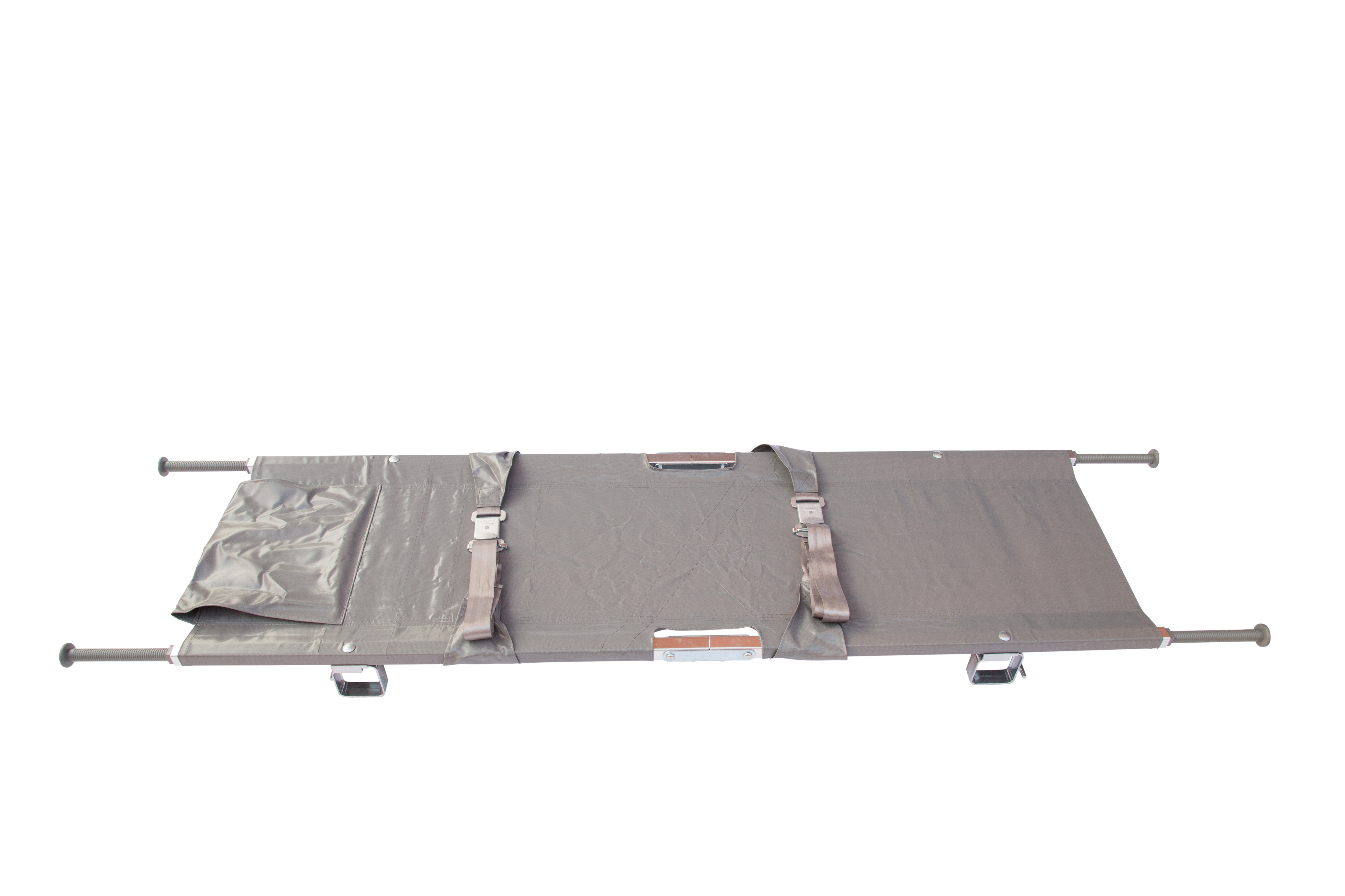 The folding stretcher with outrigger is made of high strength aluminum alloy material and the waterproof leather materials.