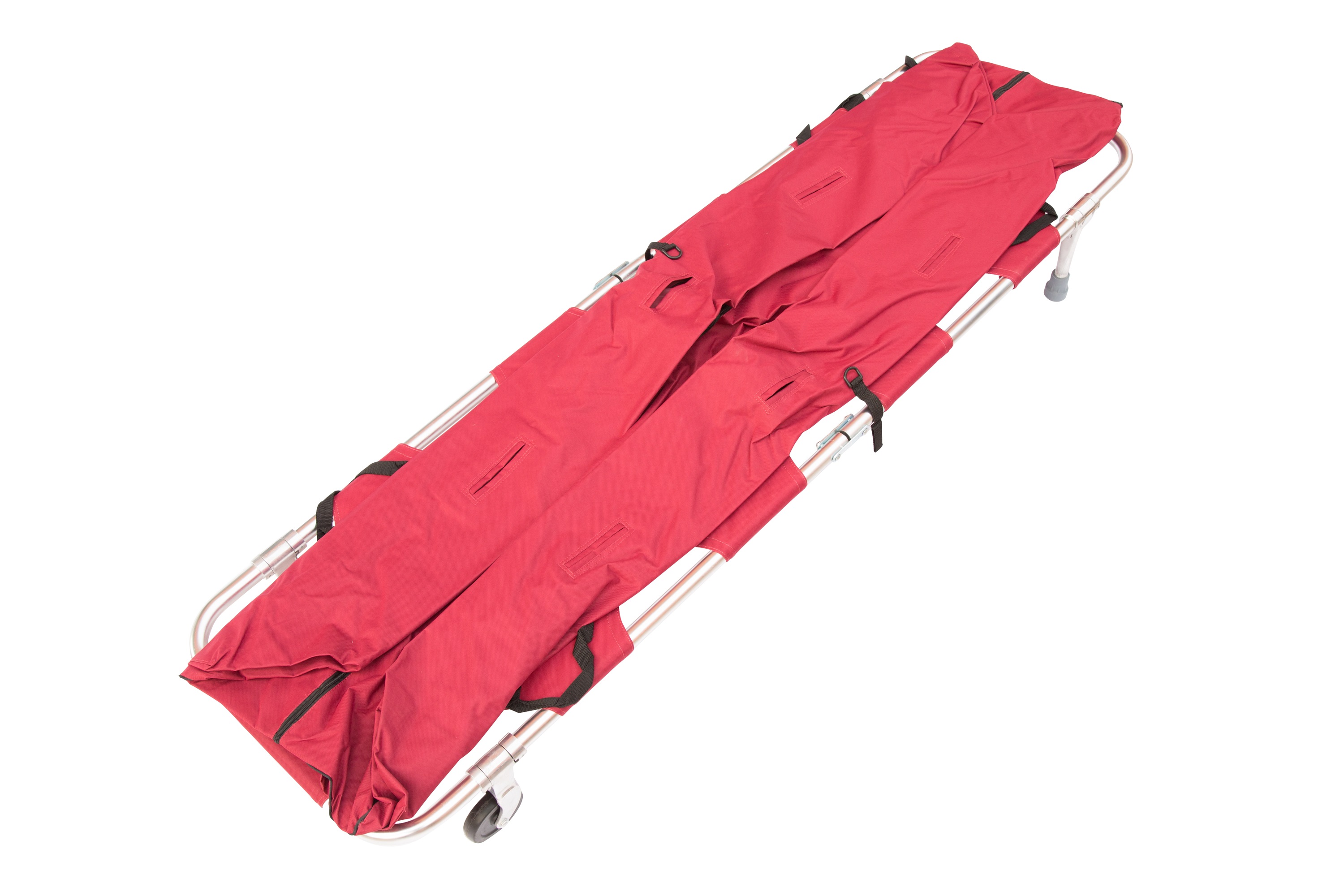 This aluminum alloy stretcher with outrigger can be folded in length and width, easy for transportation and storage.